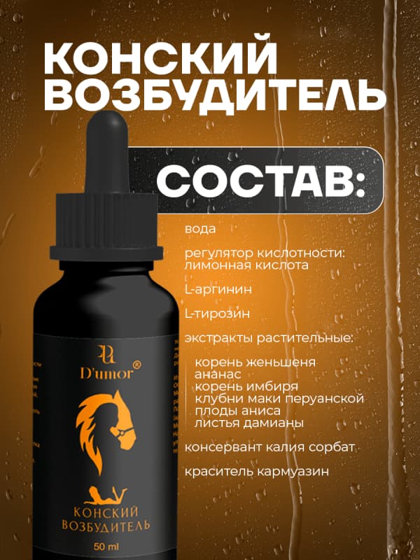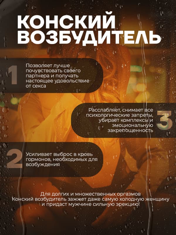Конский возбудитель — капли нового поколения для повышения либидо. Конский возбудитель — это современное возбуждающее средство, предназначенное как для женщин, так и для мужчин, которое помогает значительно повысить сексуальное желание. Эти капли способствуют усилению либидо, обладают тонизирующими свойствами и нормализуют гормональный фон. Кроме того, они стимулируют выработку серотонина, что в свою очередь усиливает сексуальное влечение. Данный продукт представляет собой идеальное решение для тех, кто хочет превратить свою интимную жизнь в океан наслаждений и осуществить свои самые смелые желания. Конский возбудитель обновляет ощущения во время оргазма, увеличивая чувствительность и яркость ощущений. Состав этого афродизиака полностью натуральный и безопасен для использования, что делает его подходящим выбором для всех, кто стремится к улучшению своей сексуальной жизни. Используя Конский возбудитель, вы сможете открыть новые грани наслаждения и сделать свои моменты близости поистине незабываемыми.